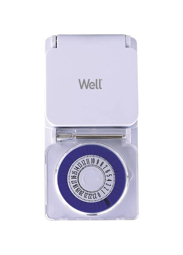 Priza programabilă mecanică Well este soluția ideală pentru controlul automat al dispozitivelor electrice din gospodărie sau grădină. Datorită designului său rezistent la intemperii, poate fi utilizată atât în interior, cât și în exterior.